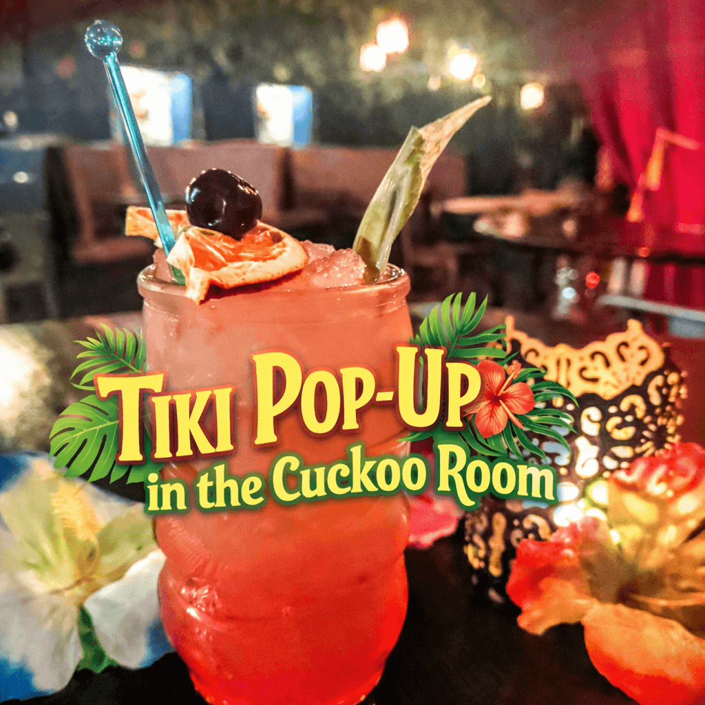The Cuckoo Room at Bar Vin Wine & Spirits has transformed into a Tiki Speakeasy Pop-Up— where the snow melts away, the lights are low, and the rum is flowing.