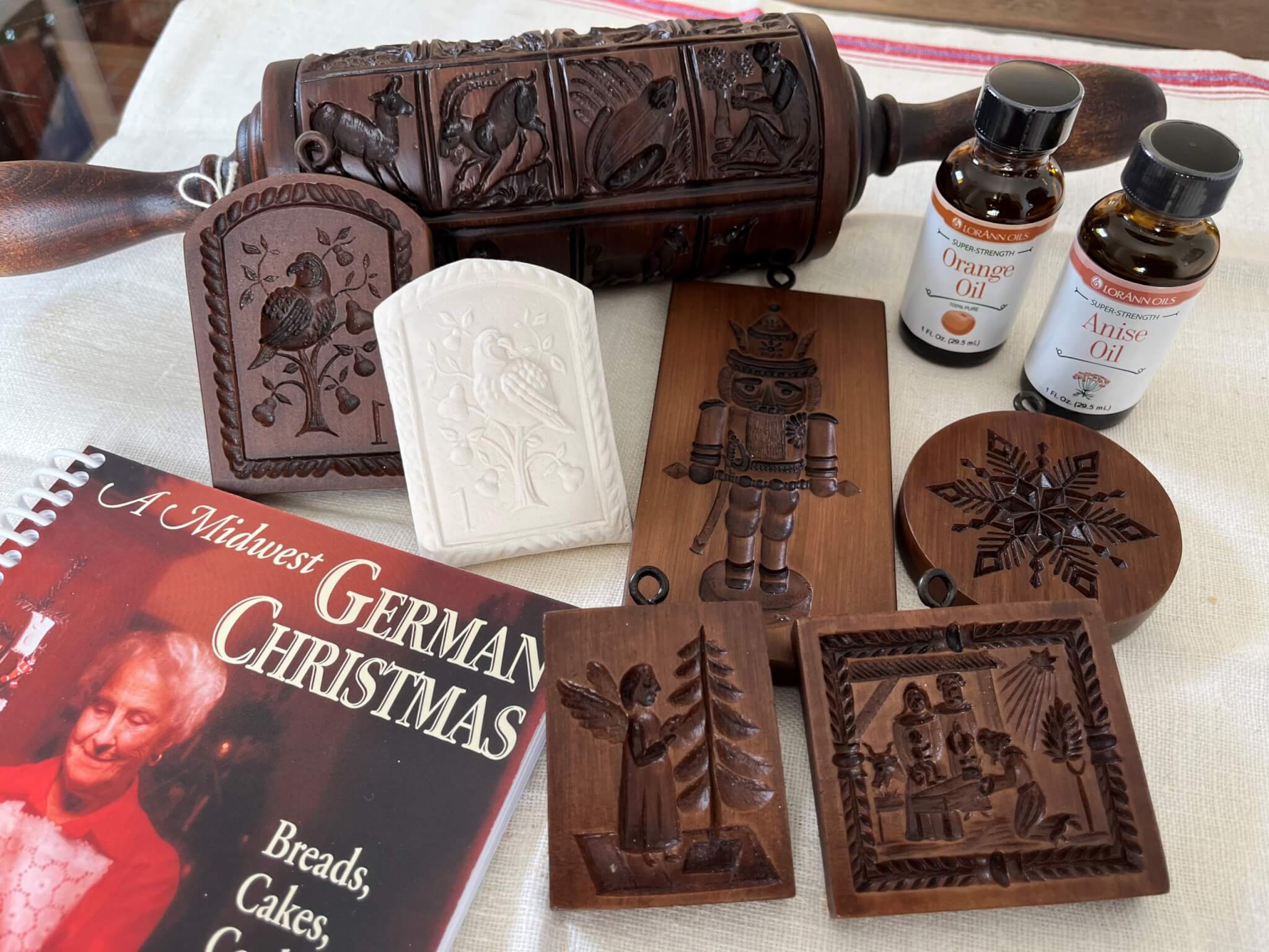 Sample traditional German Christmas cookies and see antique feather trees, fragile hand-blown ornaments, delicate Scherenschnitte, sugar ornaments and antique toys on display.