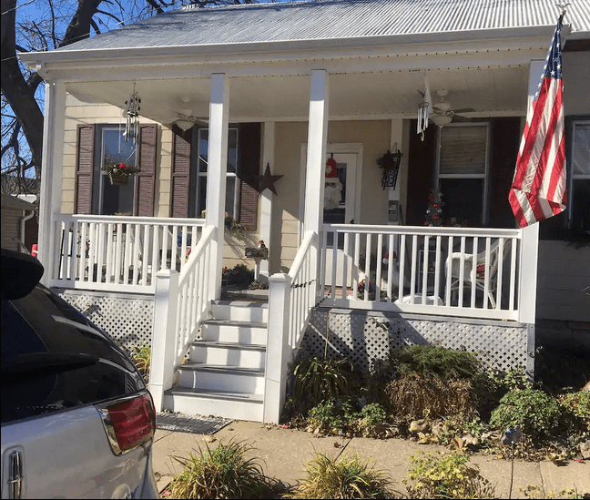 Lovely two-bedroom cottage with large front porch to sit and relax. Guests can build a fire in the chiminea and enjoy the back patio. The cottage sits in the downtown area and is walking distance to all Hermann shops and restaurants.
